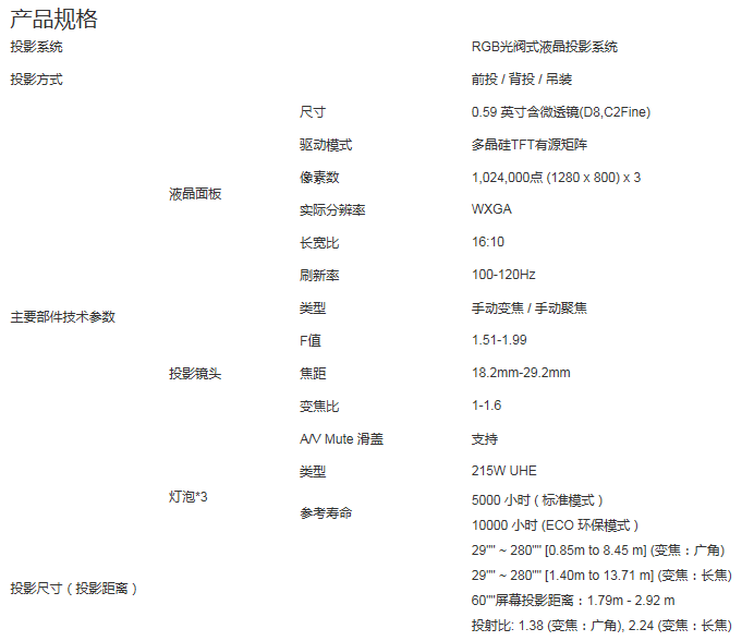 爱普生 CB-2140W 投影机 (4200流明)