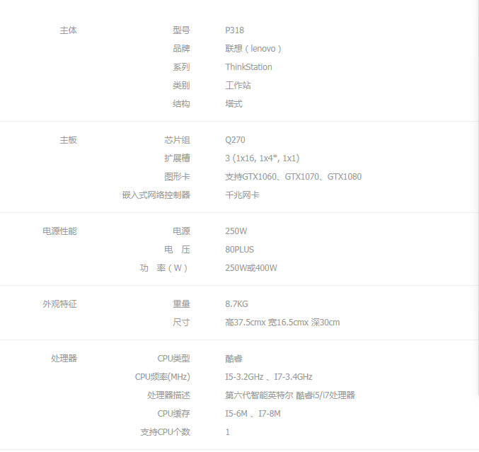 联想 台式工作站 P318 I7-6700 8G NECC 1TB GTX1080(8GB) Rambo Dos 400W