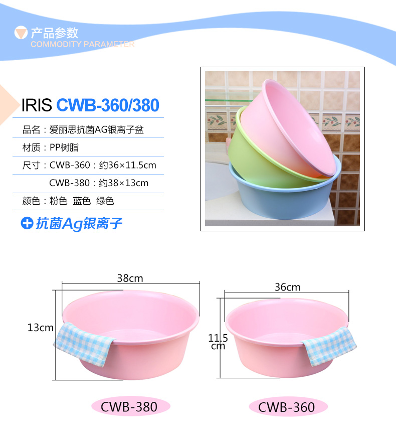 爱丽思彩色脸盆CWB-360粉色*10个