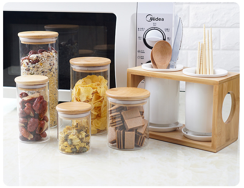 TO-PLAN玻璃密封罐85*150竹盖两个装