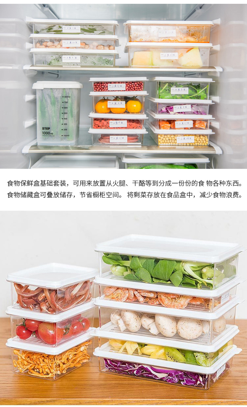 TO-PLAN长方形冰箱塑料储物盒透明中号两个装
