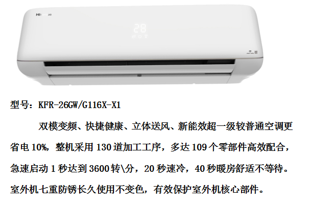 当前位置:首页 > 强制节能产品-电器-壁挂式空调 > 海信(HISENSE)KFR-26GW/G116X-X1 壁挂空调 1匹挂机