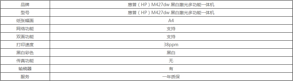 型       号: 惠普(HP)M427dw 黑白激光多功能一体机