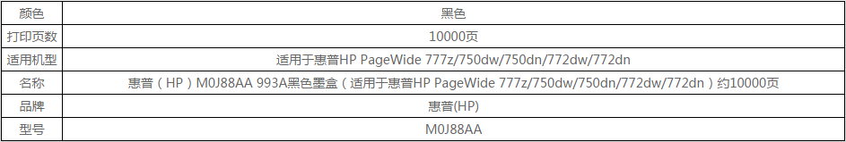 惠普(HP)M0J88AA 993A黑色墨盒(适用于惠普HP PageWide 777z/750dw/750dn/772dw/772dn)约10000页